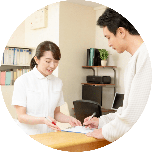 カウンセリングは男性医師が担当しています。施術はメンズ施術に慣れた看護師資格を持った女性スタッフが施術を行います。スタッフ全員が当院での医療脱毛を経験しています。そのため、施術はもちろん、お客様が来院されお帰りになる時まで、気持ちに寄り添い、安心して通院できるような環境づくりに努めています。