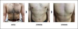 当院にいらっしゃる男性のお客様の85%が脱毛そのものが初めての方です。脱毛が初めての方は毛が太めであるため一般的に効果が高いです。
